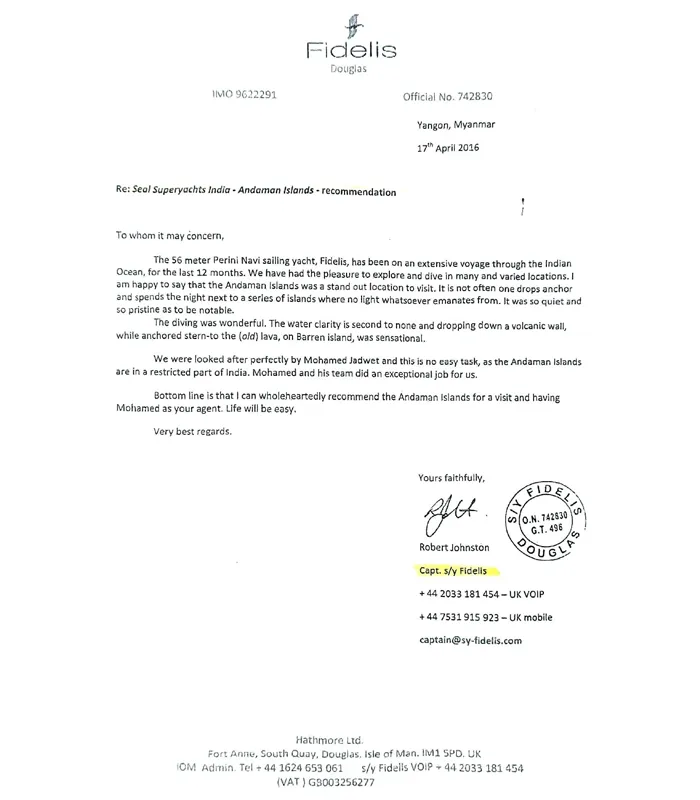"We have had the pleasure of exploring and diving in many varied locations through our yacht. I am happy to say that Andaman Islands was a standout location to visit. We were looked at perfectly by Mohammed Jadwet & team. "